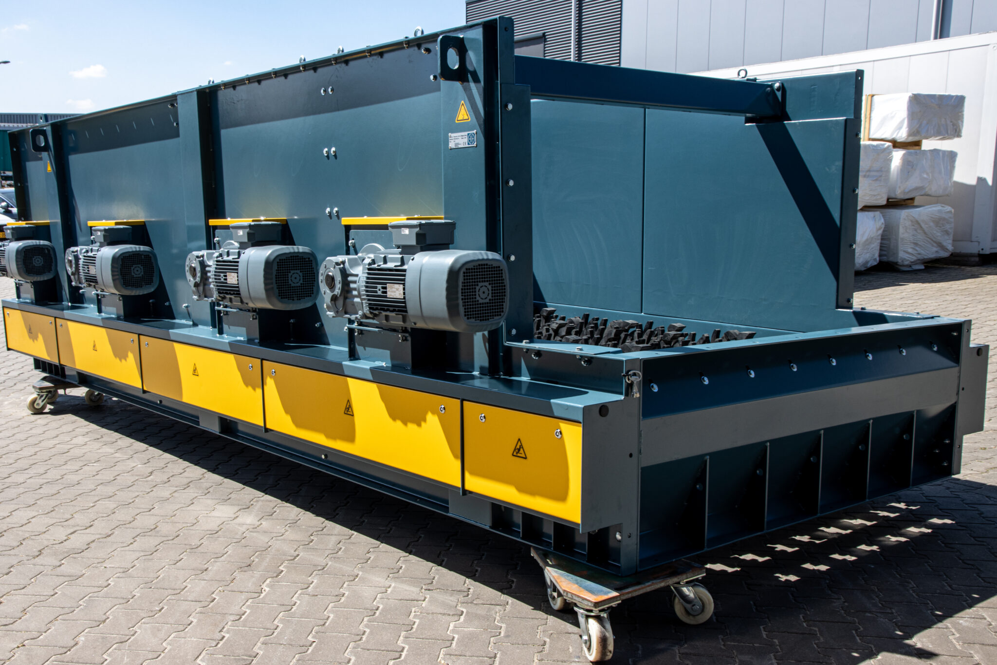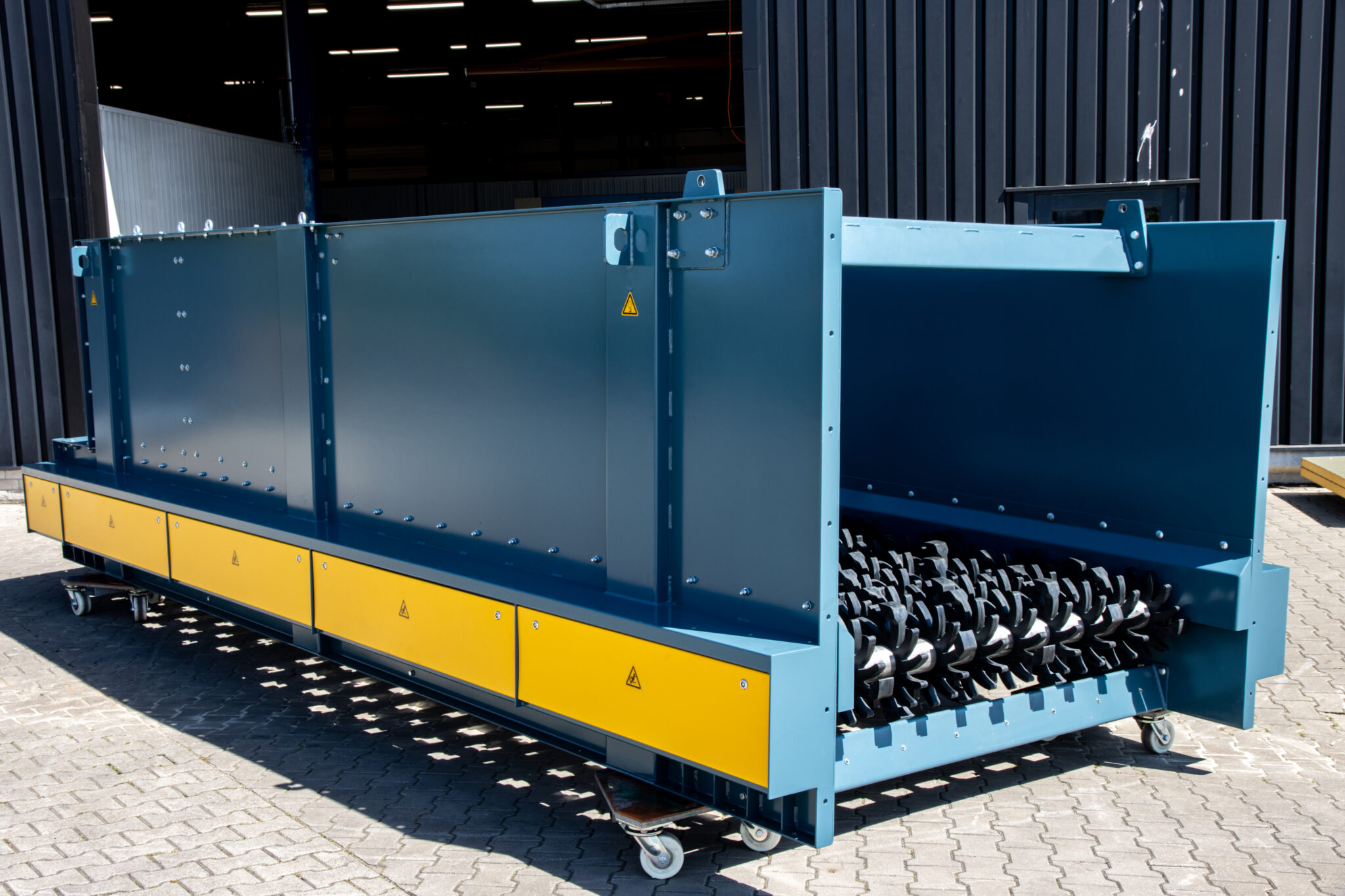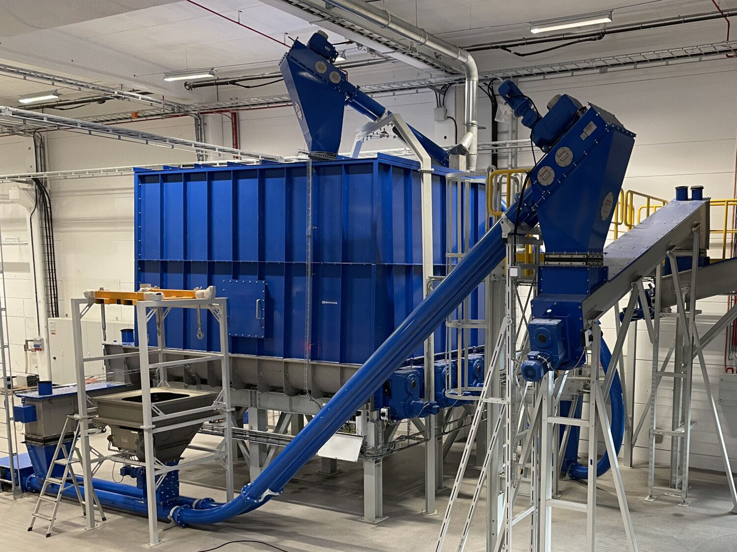 This 60m3 bunker has been installed at a Swedish recycling plant. Along with 4 screw conveyors it will store and transport shredded EV battery’s. The purpose is to extract the valuable metals and recycle them.