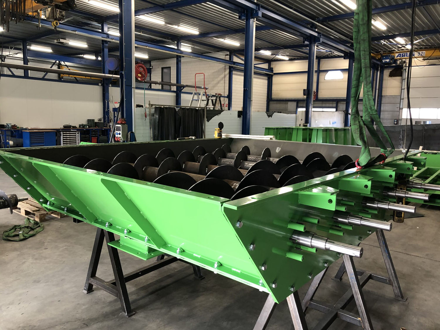 Several transport screws have been delivered and installed at a milling facility specialized in biomass pelletization. These screws will transport several types of biomass like straw, grass clippings or cocoa remnants.
