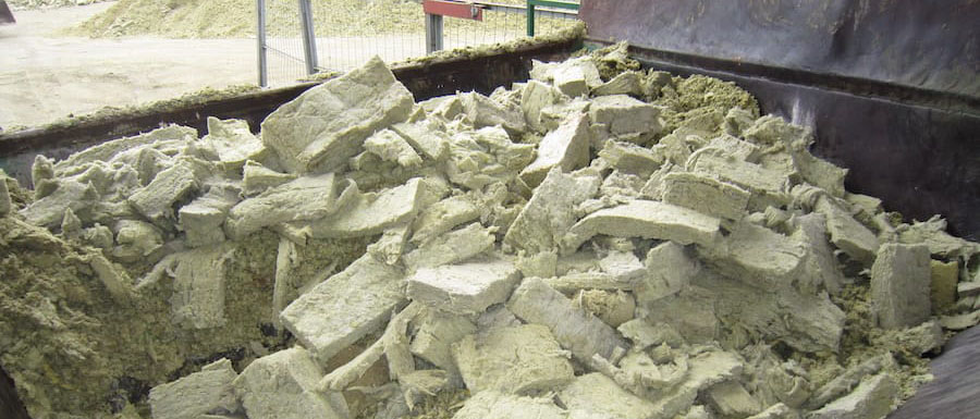 Stone wool and other insulation ready for crushing / milling.