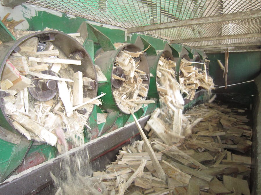 The mill crushes the wood waste to reduce the volume so the wood is ready for subsequent processing as wood pellets.