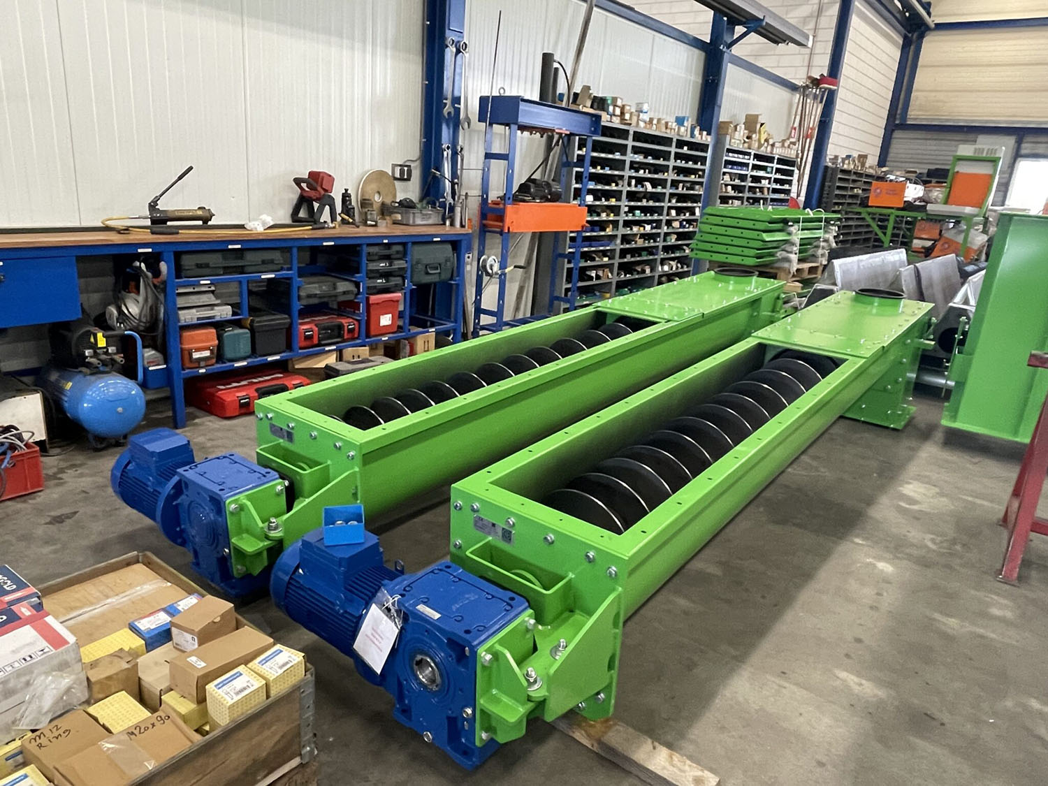Several transport screws have been delivered and installed at a milling facility specialized in biomass pelletization. These screws will transport several types of biomass like straw, grass clippings or cocoa remnants.